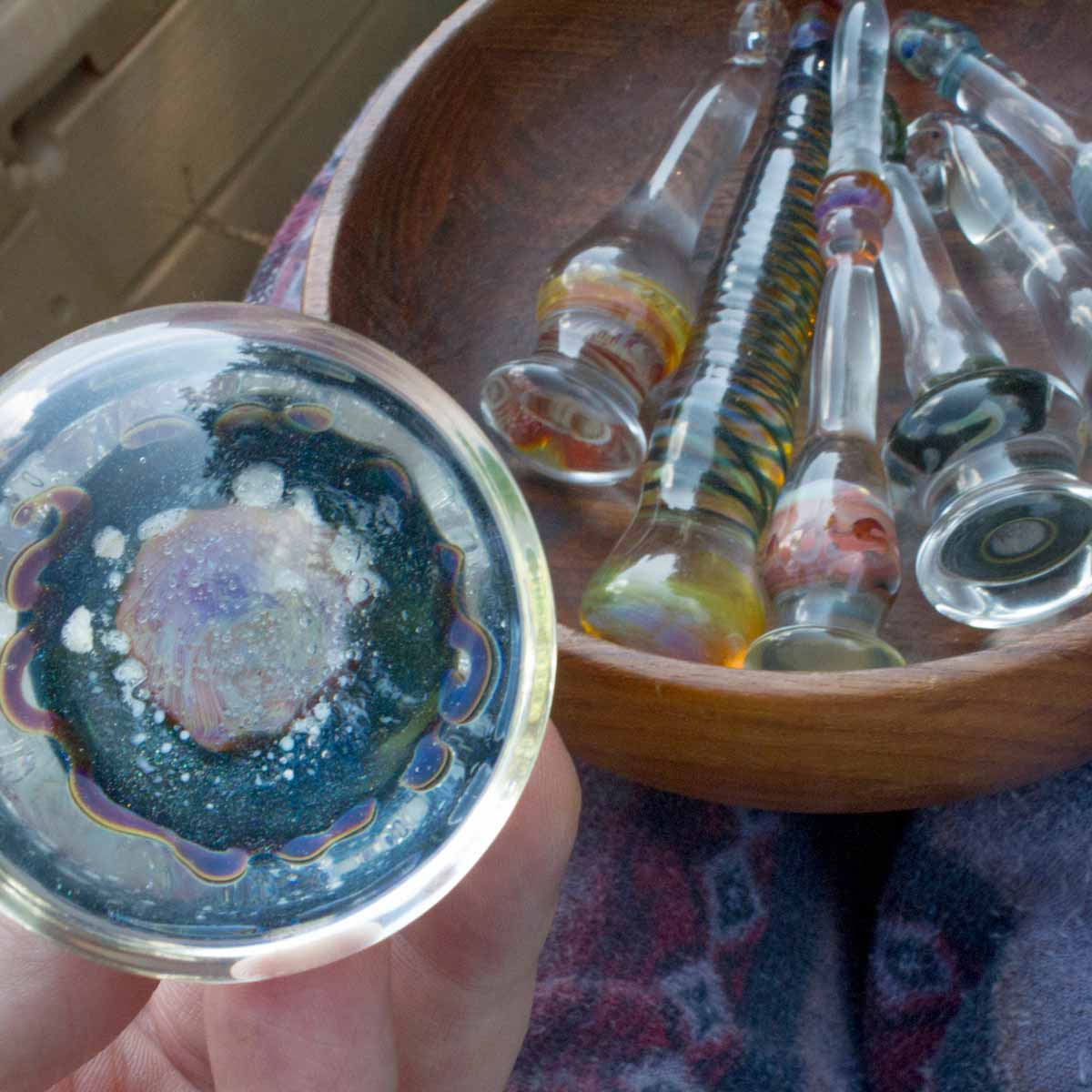 Disc paperweights are shorter than the round paperweights. The most popular BASIC design for these is the Air Trap.