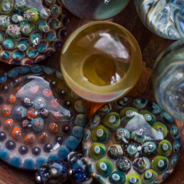 This is a gallery of glass artist Vaughn Evans work. These are old photos, check out Cremation Marbles instagram page for more recent pictures and videos, including many more cremation glass objects. Many of these objects do not have ashes, but should be used as examples of what Vaughn can do for custom cremation orders. Email Vaughn at vonbeads@gmail.com